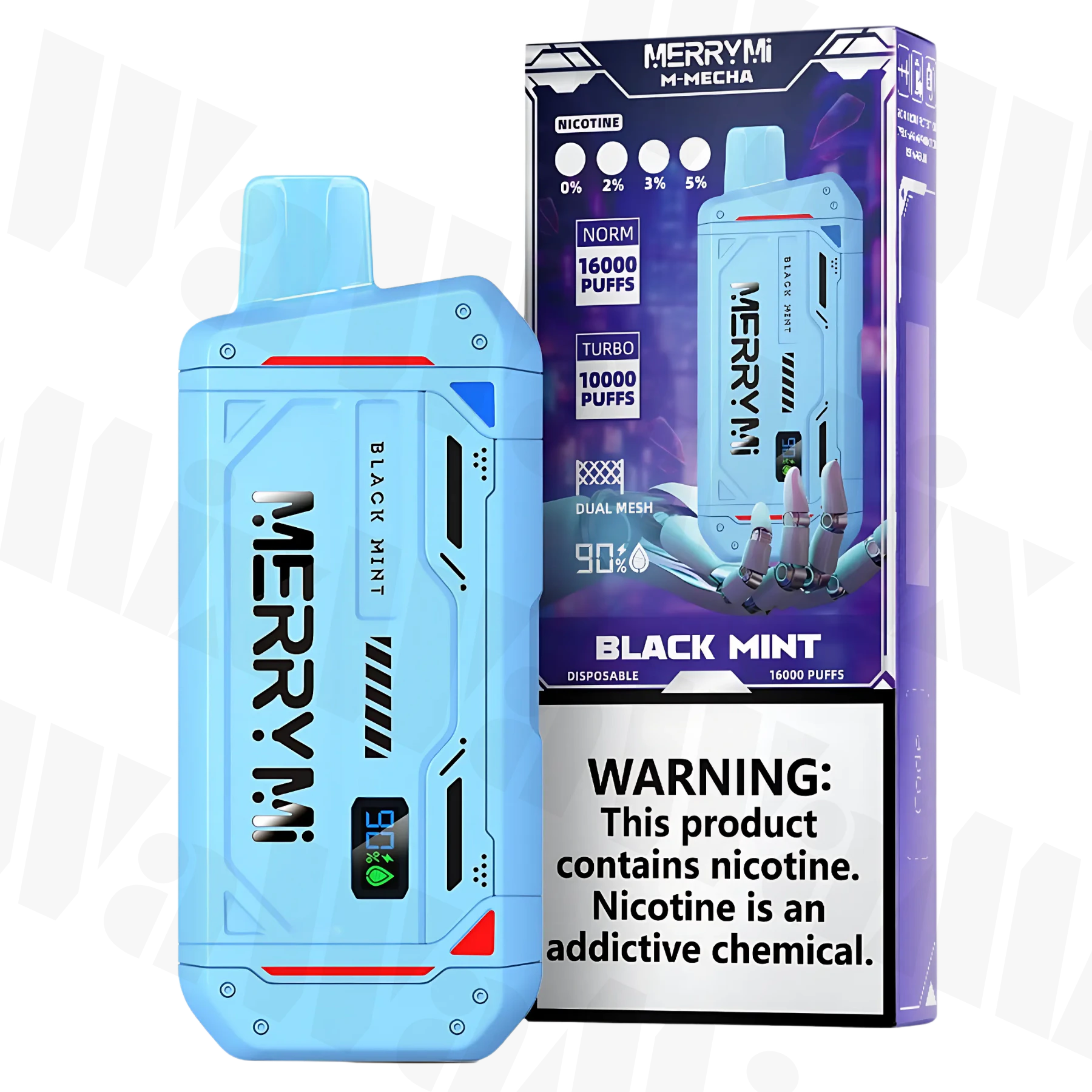 M-Mecha is an innovative disposable e-cigarette created with maximum comfort of use in mind. Thanks to the capacious battery 850 mAh and an impressive amount 20 ml e-liquid, the device offers up to 16.000 puffs, which makes it one of the most efficient models on the market. This is an ideal solution for people looking for a convenient and maintenance-free way to vape.