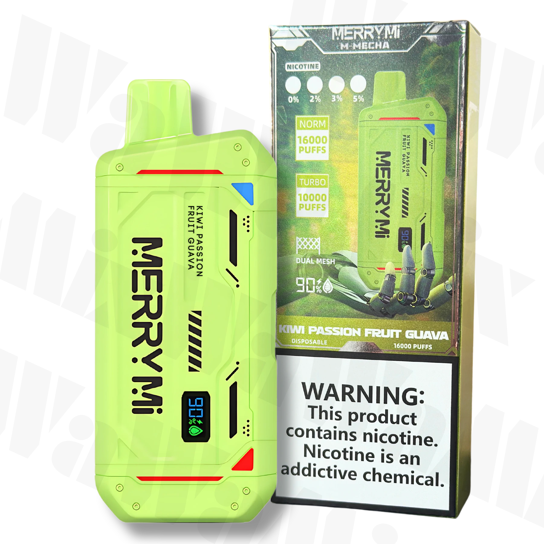 M-Mecha is an innovative disposable e-cigarette created with maximum comfort of use in mind. Thanks to the capacious battery 850 mAh and an impressive amount 20 ml e-liquid, the device offers up to 16.000 puffs, which makes it one of the most efficient models on the market. This is an ideal solution for people looking for a convenient and maintenance-free way to vape.